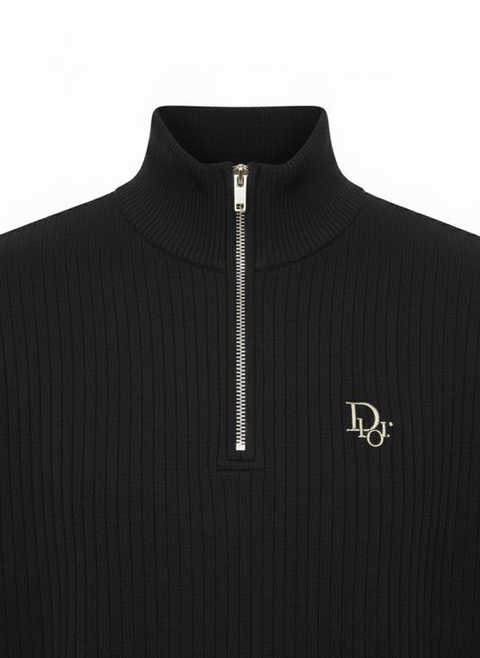 Black Elegant Texture Mock Neck Full Sleeve - Bebold.